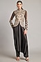 Featuring a black jacket in organza base with zari embroidery. Accentuate it with pants, statement earrings and heels for evening soirees.
