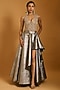 Featuring a gunmetal color asymmetrical quilted skirt in lamme base. Style it with a fitted silk blouse or an embroidered crop top, statement gold earrings, a sleek clutch, and elegant heels for a stylish ensemble, ideal for cocktail nights or gala dinners.
