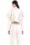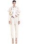 Featuring an ivory jacket in heavy knit base with pearl and sequins embroidery including crochet details. It is paired with matching pants.