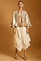 Featuring an ivory flap dhoti pants in rayon base. Style it with a fitted silk blouse or an embroidered crop top, statement gold earrings, a sleek clutch, and elegant heels for a stylish ensemble, ideal for cocktail nights.