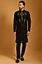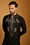 Featuring a black kurta in georgette base with threadwork. It is paired with poly silk pyjama pants. Style it with mojaris for a reception, engagement, sangeet or wedding ceremony.