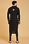 Featuring a black kurta in rayon base with gold zari work. It is paired with matching churidar pants.