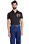 Featuring a black t-shirt in jersey base with polo neck and computer embroidered patch. This contains only one piece.