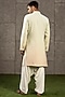 Featuring a blue to peach ombre sherwani in matka silk base with print. It is paired with a matching kurta and patiala pants in rayon base.