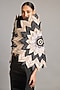 Featuring a metallic cocoon cape in taffeta and lamme base with 3D mandala detail. Accentuate it with a skirt, statement jewellery, heels and a clutch for a cocktail soiree.