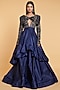 Featuring a navy blue bauble tiered gown in parachute and nylon base with embroidered bust. It is paired with a contrasting bow.