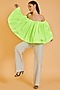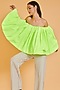 Featuring a neon green bubble top in heavy taffeta base with striped corset shell.