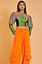 Featuring an orange oversized pants in lycra knit base with pocket details.