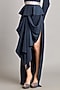 Featuring a slate grey draped skirt in microfiber and heavy knit base. Accentuate it with a blazer, statement earrings and heels for cocktail parties.