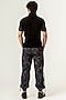 Featuring black cargo trousers in poly lycra base with print and drawstrings at the bottom. It has an elasticated hem and a front opening. This contains only one piece.