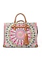 Featuring a mint and blush pink tote bag in canvas and leather base with print and adjustable shoulder strap.