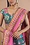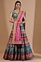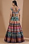Featuring a blue lehenga in dupion base with embroidery and digital print. It is paired with a matching embroidered blouse and a net dupatta.