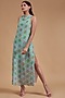 Featuring a blue dress in pure crepe base with sequins embroidery, digital print and a cowl neckline.