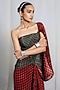Featuring a courtyard green asymmetric draped saree dress in crepe base. Accentuate it with statement jewellery and heels for festive occasions, wedding or sangeet ceremony.