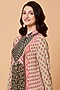 Featuring a cream and bottle green tunic in pure crepe base with floral print and a mandarin collar. This contains only one piece.