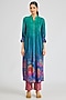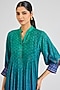 Green & Blue Modal Muslin Cotton Threadwork & Printed Ombre Kurta Set