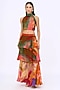 Featuring a multi-colored layered top in silk organza and crepe base with a halter neck and print. It is paired with a silk organza and crepe layered skirt. Accentuate it with statement earrings and heel for evening parties or cocktail ceremony.