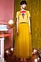 Featuring a mustard ice cream sweatshirt in scuba base. It is paired with a matching bustier.