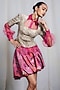 Pink Raw Silk Printed Asymmetric Bubble Skirt Set