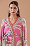 Featuring a pink wrapped dress in rayon base with digital print. It is paired with a matching belt.