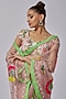 Featuring a powder pink saree in silk organza base with patchwork sequins and beaded hand embroidery. It is paired with a raw silk blouse. Accentuate it with statement earrings and heels for a wedding, sangeet or engagement ceremonies.