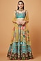 Featuring a turquoise lehenga in dupion base with sequins hand embroidery and digital print. It is paired with a matching blouse and an organza dupatta.