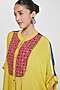 Featuring a yellow kurta in habutai silk base with mirror hand embroidery. It is paired with rani pink cotton twill hand embroidered pants. Accentuate it with polki earrings and heel for festive gatherings or pooja ceremony.