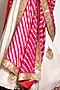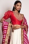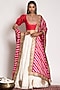 Featuring an ivory crushed lehenga in silk base with gota and anchor work. It is paired with a contrasting red blouse having gota patti and cutdana hand embroidery and a leheriya dupatta.