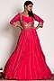 Featuring a strawberry pink crushed anarkali in silk base with an attached angrakha jacket and gota patti embroidery. This contains only one piece.