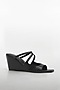 Featuring a pair of black wedges in vegan leather and rubber base with peep-toe and criss-cross straps. It has 3-inch heels. Perfect for weddings, parties, and festive glam looks.