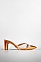 Featuring a pair of burnt orange pointed heels in vegan leather and rubber base with clear straps. It has 2.75-inch heels. Perfect for weddings, parties, and festive glam looks.