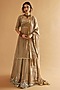 Beige Brown Pure Silk Mukaish Embroidered Lehenga Set