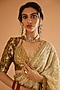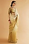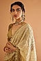 Featuring a beige ombre saree in pure mul chanderi base with mahepusht and dabka work. It is paired with an underskirt. Style it with a blouse, polki accessories and metallic sandals for a luxe touch, perfect for Sufi nights, heritage venues, or engagement evenings.