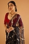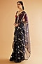 Featuring a charcoal saree in pure georgette and mashru base with aari boota and chhadi embroidery. It is paired with an underskirt. Style it with a blouse, polki accessories and metallic sandals for a luxe touch, perfect for Sufi nights, heritage venues, or engagement evenings.