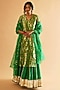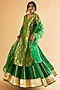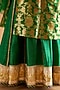 Featuring an emerald green lehenga in chanderi base with gota-border detail. It is paired with a brocade kurta and an organza dupatta. Style it with emerald jewellery and a sleek bun for a regal finish. Ideal for royal-themed weddings or receptions.
