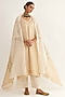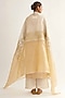 Featuring a gold and off-white straight kurta in maheshwari stripe base. It is paired with off-white banarasi zari pants, a calligraphic patchwork and cutwork dupatta, including a slip. Accentuate it with statement jewellery and heels for festive occasions or wedding ceremony.