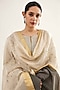 Featuring a grey and off-white kalidar kurta in maheshwari stripe base. It is paired with grey banarasi zari stripe pants, an embroidered dupatta and a slip. Accentuate it with statement jewellery and heels for festive occasions or wedding ceremony.