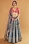 Featuring a grey lehenga in pure silk base with karchobi and jaal embroidery. It is paired with an embroidered blouse and an organza dupatta. Style it with oxidised silver jewellery and side-parted waves for a rustic edge, best suited for cultural festivities or festive gatherings.