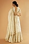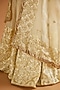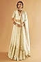 Featuring an ivory lehenga in pure chanderi base with gota-patti and sitara embroidery. It is paired with an embroidered blouse and a dupatta. Pair with kundan jewellery and a sleek bun for a regal touch, perfect for traditional morning pheras or temple weddings.