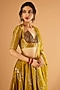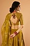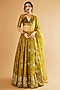 Featuring a mehendi green lehenga in pure silk base with karchobi and jaal hand embroidery. It is paired with an embroidered blouse and an organza dupatta. Style it with gold jewellery and soft side-parted waves to evoke a rustic charm. perfect for cultural festivities, mehendi functions, or intimate festive gatherings.