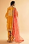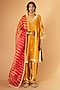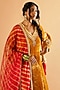 Featuring a mustard yellow straight kurta in velvet base with leheriya border and zardosi work. It is paired with salwar pants and a pure organza embellished dupatta. Accentuate it with dangler earrings and block heels for pre-wedding ceremonies.