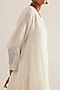 Featuring an off-white straight kurta in linen base with floral patchwork. Accentuate it with pants, statement jewellery and heels for festive occasions or wedding ceremony.