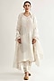 Featuring an off-white kurta in pure linen base with calligraphic patchwork and cutwork embroidery. It is paired with zari stripe khadi salwar pants, a dupatta and a slip. Accentuate it with statement jewellery and heels for festive occasions or wedding ceremony.