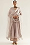 Featuring a purple angrakha kurta in chanderi base. It is paired with churidar pants, an organza embroidered dupatta and a slip. Accentuate it with statement jewellery and heels for festive occasions or wedding ceremony.