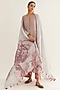 Featuring a purple kalidar kurta in linen base. It is paired with rose pink chanderi checkered pants and a light blue linen floral printed dupatta. Accentuate it with statement jewellery and heels for festive occasions or wedding ceremony.