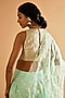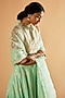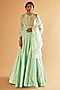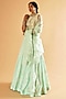Featuring a sea green lehenga in pure silk base with jaal and sitara embroidery. It is paired with an embroidered blouse and an organza dupatta. Style it with an embroidered potli bag for a vintage flair. Ideal for roka functions or cultural evenings.
