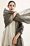Featuring a silver straight kurta in chanderi tissue base with stripe details, calligraphic painting and embroidery. It is paired with silver pants, a black zari checkered dupatta and a slip. Accentuate it with statement jewellery and heels for festive occasions or wedding ceremony.