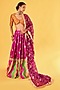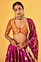 Featuring a violet lehenga in pure banarasi poth and silk base with patchwork. It is paired with a blouse and a pure georgette dupatta having golden lace detail. Style with delicate chandbalis and soft glam makeup for a festive look, perfect for intimate ceremonies or pre-wedding events.