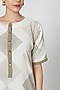 Featuring an ivory kurta in cotton base with geometric handblock print. It is paired with matching palazzo pants.