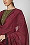 Featuring an olive green kurta in cotton base with geometric handblock print. It is paired with contrasting maroon palazzo pants and a dupatta.